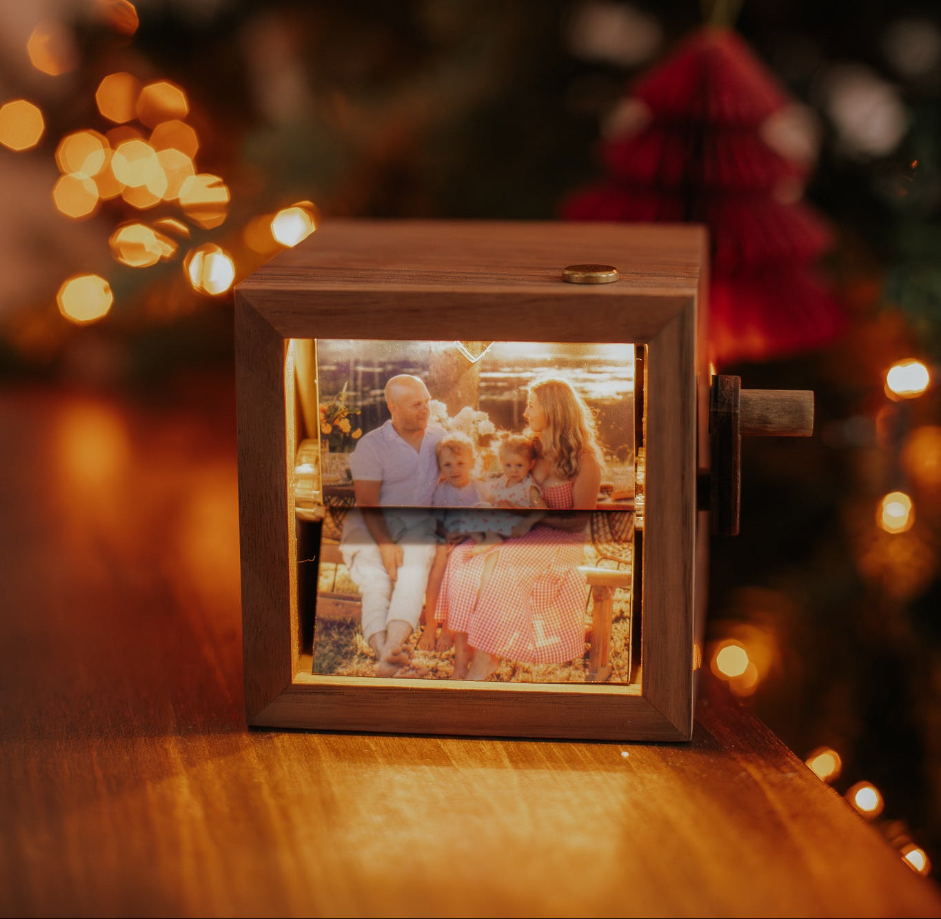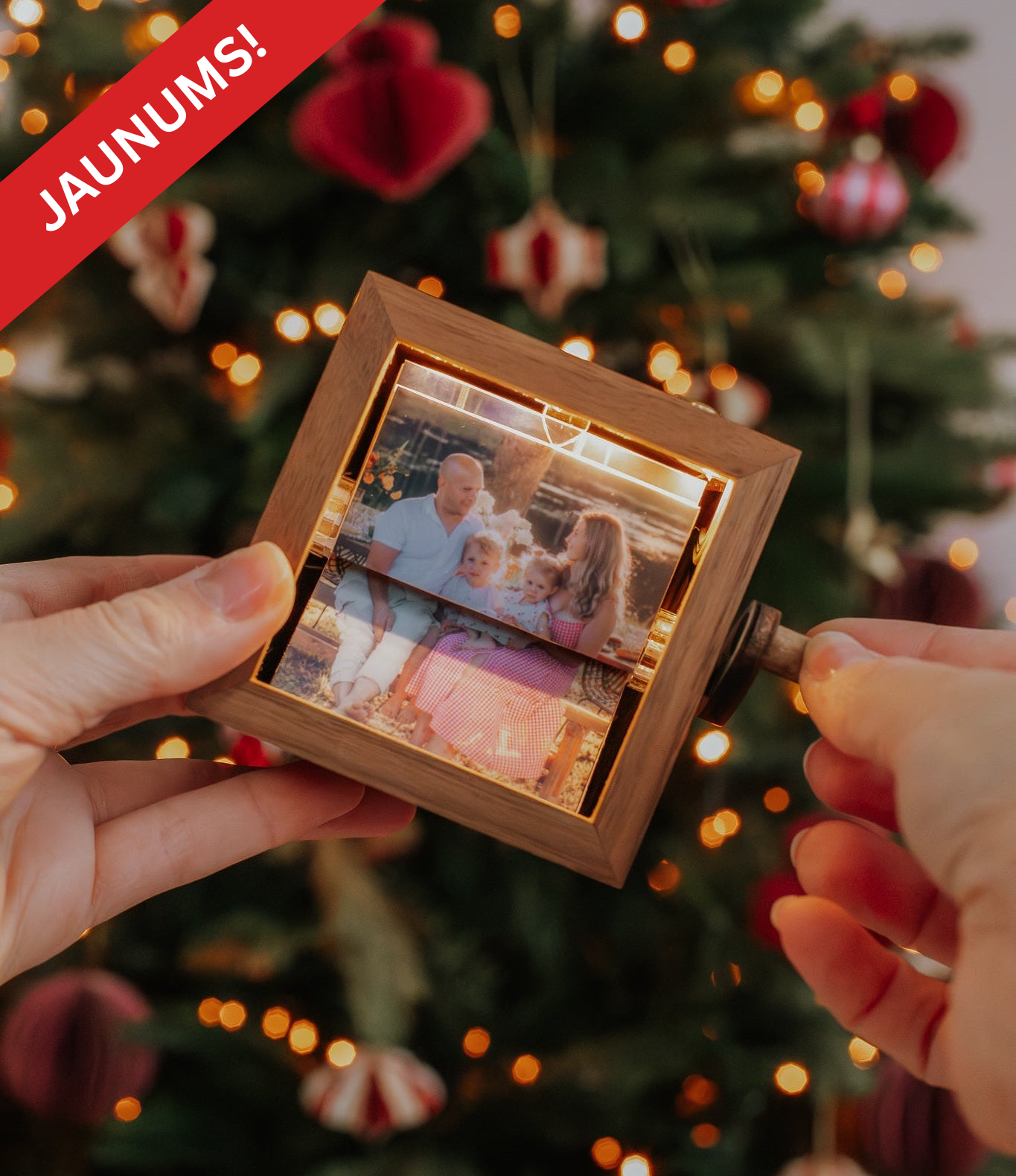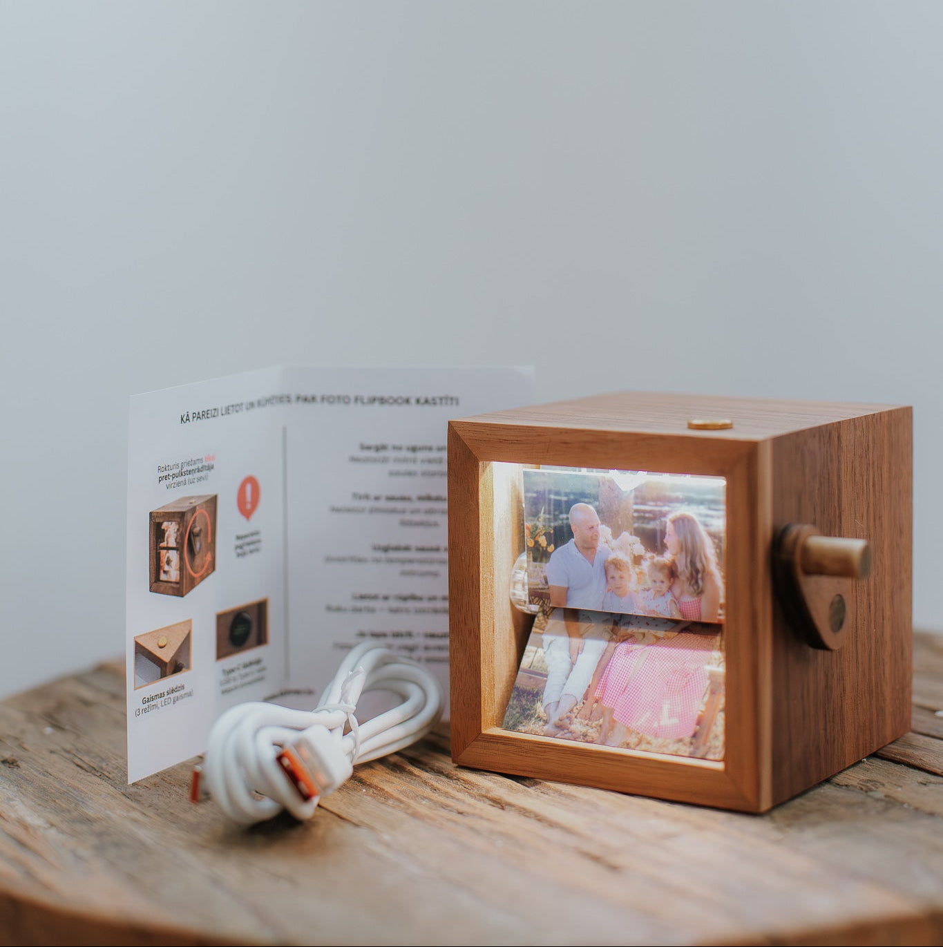 Atdzīvini savas atmiņas ar personalizētu foto kastīti - 8 fotogrāfijas, silta gaisma un stāsts, kas atdzīvojas kadru pēc kadra.