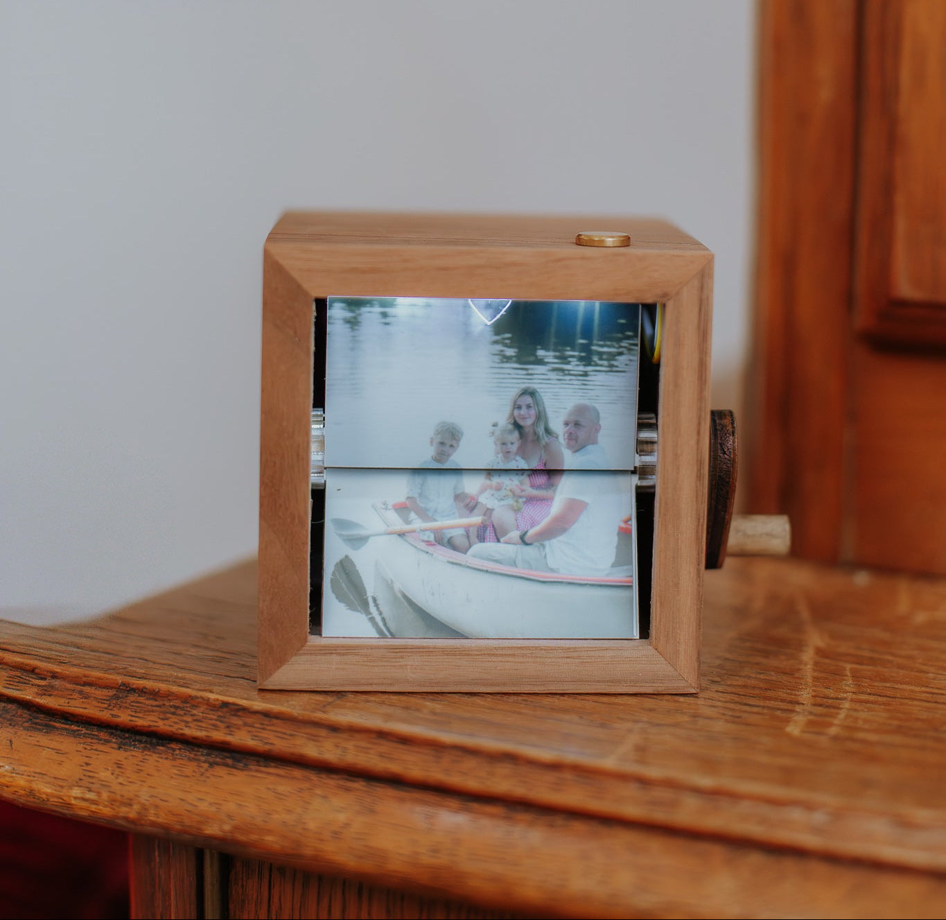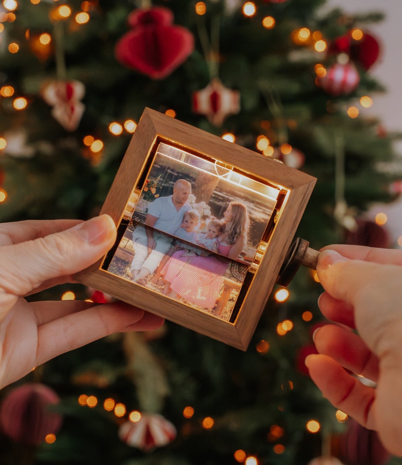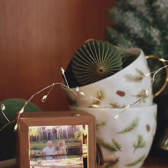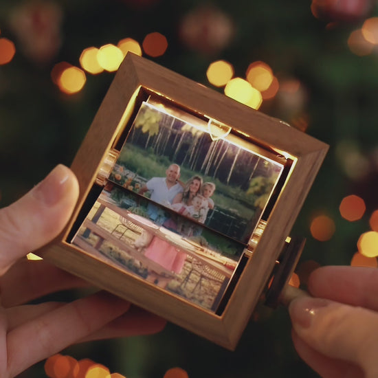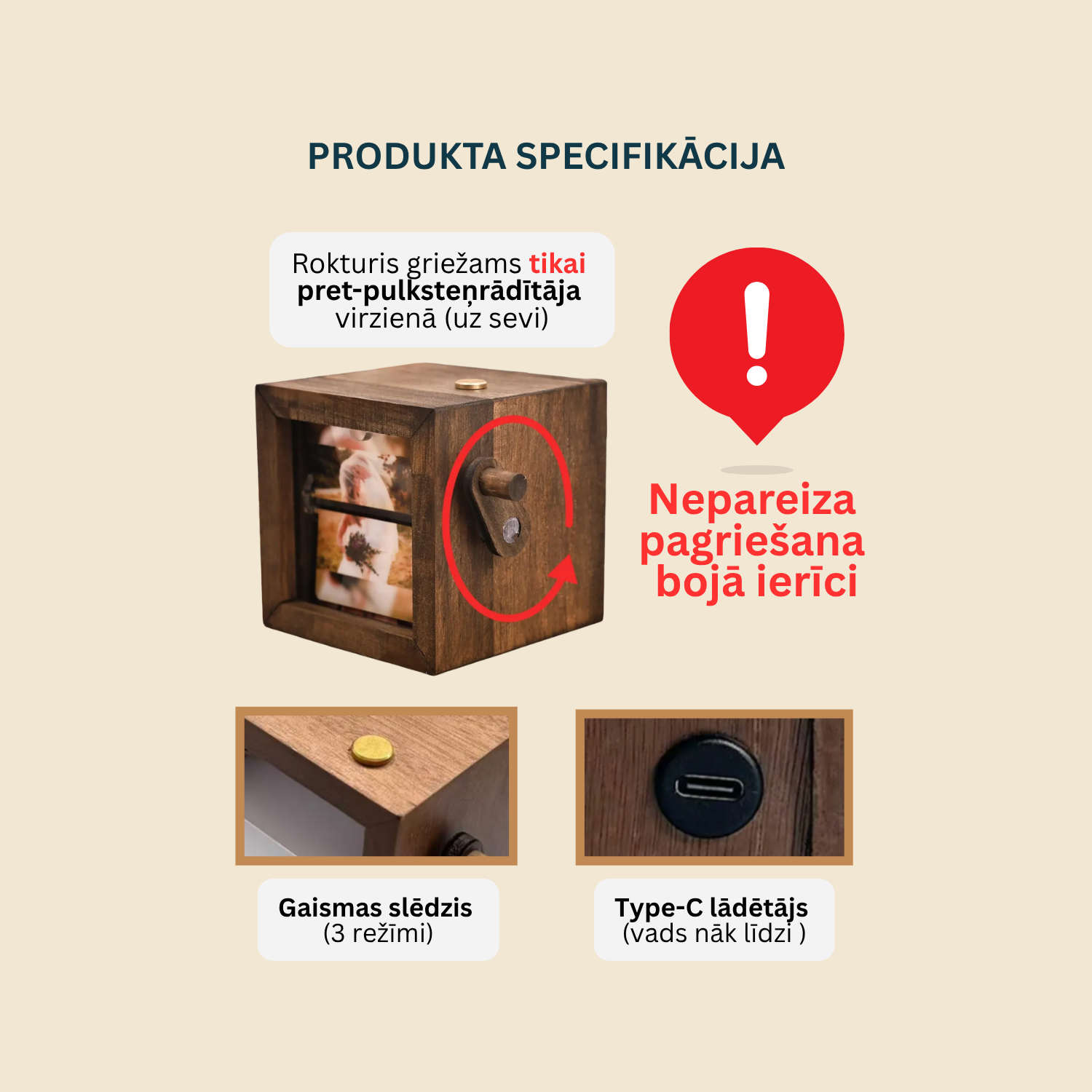 Atdzīvini savas atmiņas ar personalizētu foto kastīti - 8 fotogrāfijas, silta gaisma un stāsts, kas atdzīvojas kadru pēc kadra.