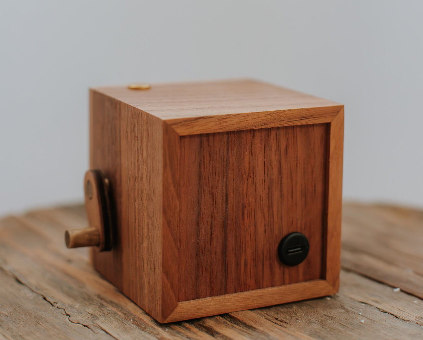Materiāli: koks, akrils, metāla mehānisms un premium klases foto papīrs